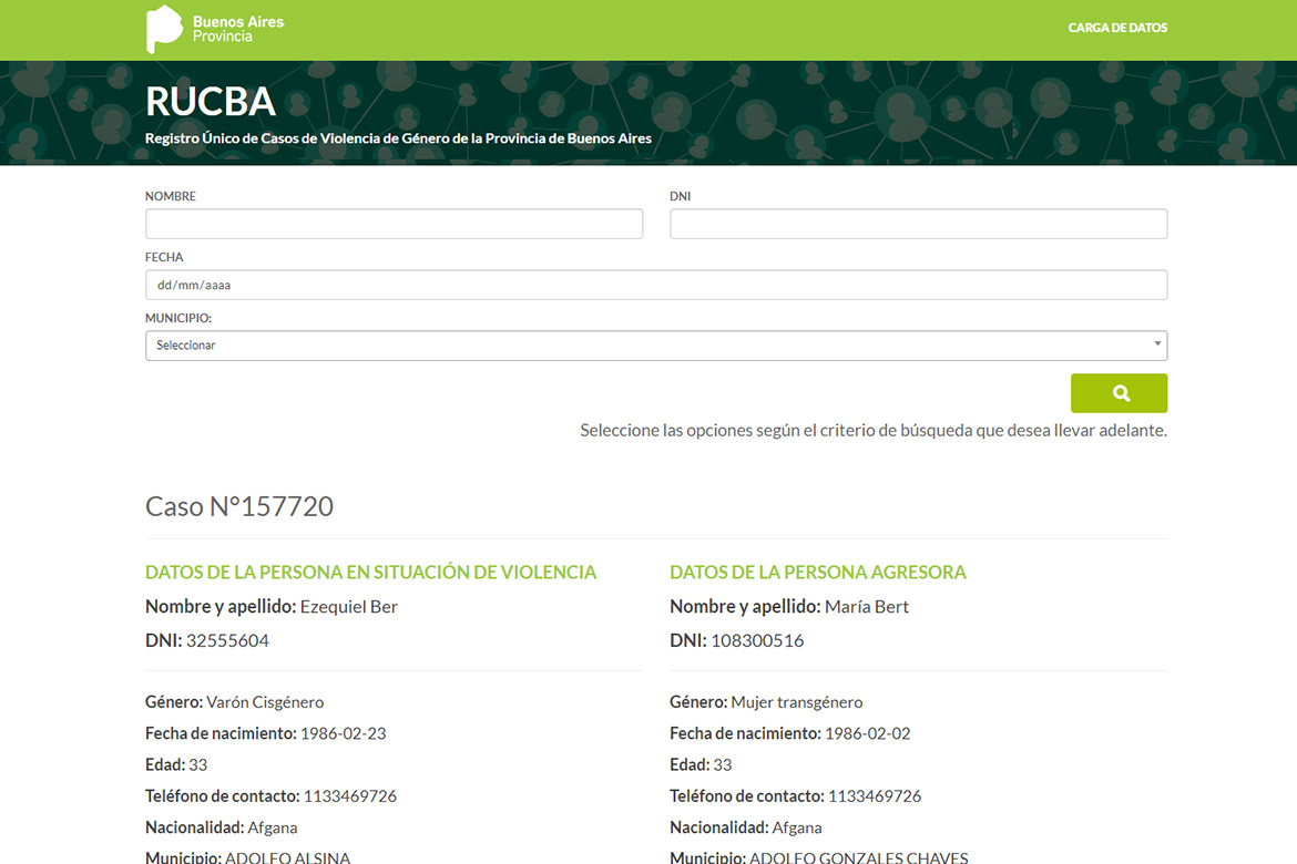 El Registro Unico de Casos de violencia de género de la Provincia de Buenos Aires fue desarrollado bajo una plataforma web interactiva. La misma, fue diseñada y programada bajo las funciones de html5 y php. Para poder brindarle a los usuarios la posibilidad tanto de carga como de consulta desde cualquier dispositivo con acceso a Internet, el desarrollo se llevó adelante utilizando el framework Bootstrap.